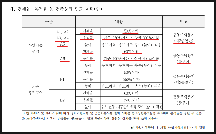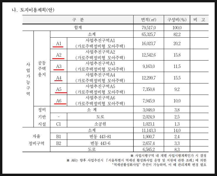 A6 구역은 건폐율 60%이하, 용적률 400%이하, 준주거지역으로 상향되었습니다.