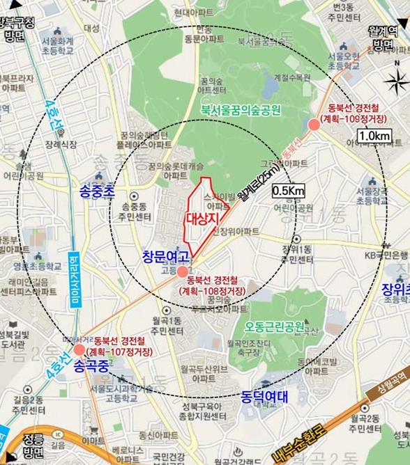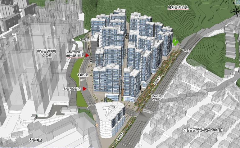미아4-1구역은 지하철 4호선 미아사거리역까지 도보로 접근이 가능한 지역입니다. 2026년 신설 예정인 동북선 경전철 역세권임을 감안해서 용도지역도 상향했습니다. 북서울꿈의숲과 같은 자연환경은 모두 누릴 수 있는 단지가 될 것으로 기대가 됩니다.