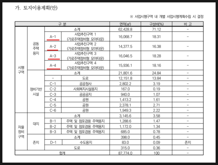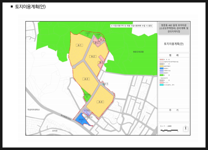 이 지역은 A-1, A-2, A-3, A-4 4개의 가로주택 정비형 모아타운으로 나눠 진행이 될 계획입니다.