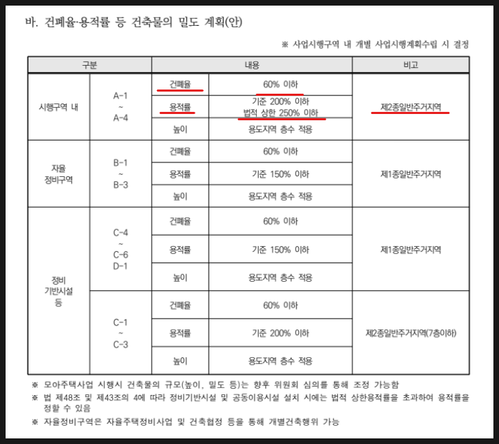 시행구역 내 건폐율은 60%이하, 용적률은 법적상한 250%이하로 제2종일반주거지역입니다.
