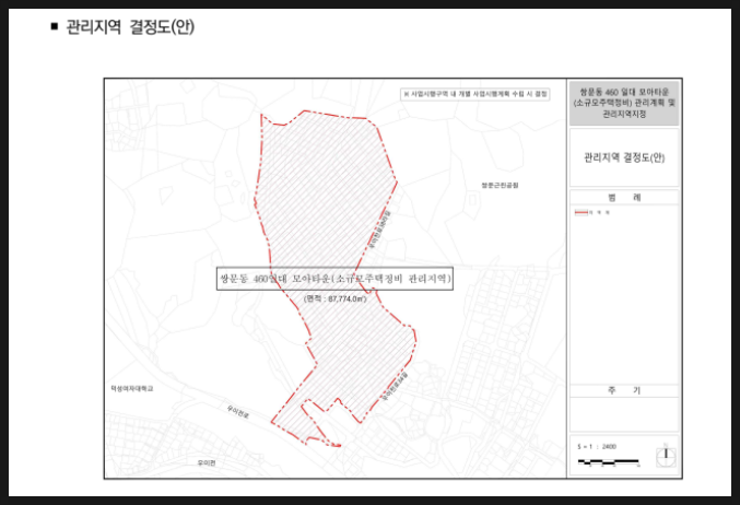 관리계획 및 관리지역 결정도( 2만m² 미만 시행시)